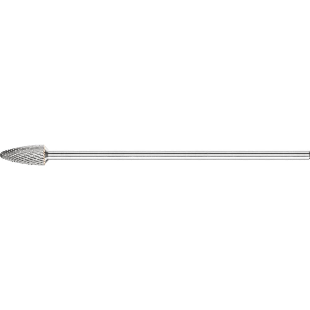 Spetsformad fil med rundad topp enligt DIN 8032 med tandning enligt DIN 8033. GL = Totallängd (homogen hårdmetall) SL = Skaftlängd (långt stålskaft)