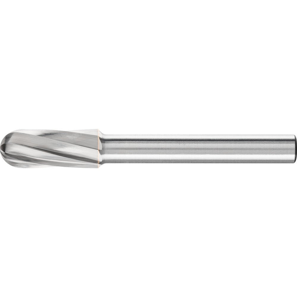Cylindrisk fil med rundad topp enligt DIN 8032 med tandning enligt DIN 8033. Kombination av cylindrisk och kulformig geometrisk form. GL = totallängd (homogen hårdmetall) SL = skaftlängd (långt stålskaft)