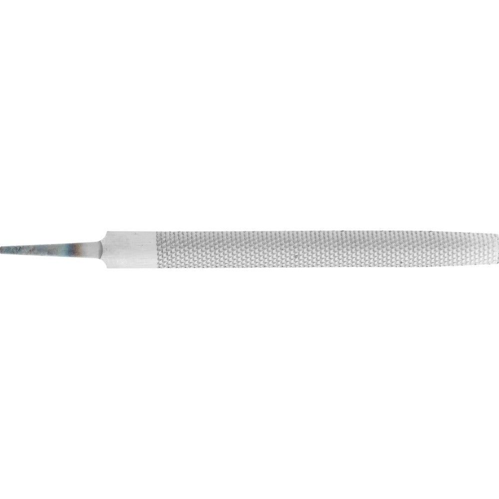 Halvrund fil, avsmalnande form, med rasphuggning på två sidor. Form C enligt DIN 7263. Med tånge.