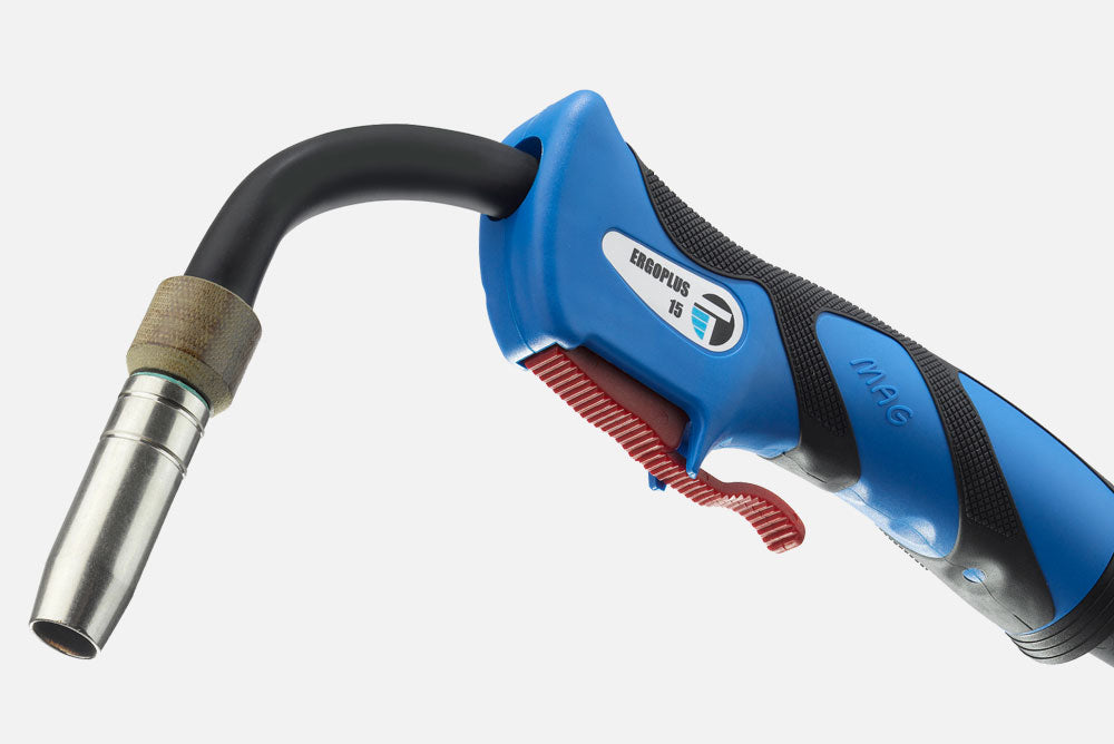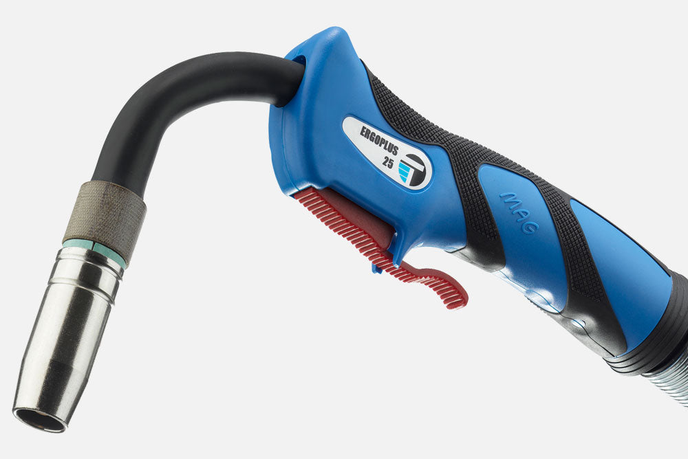 The newly designed handle has been developed so to obtain a perfect balance during welding operations. Additional grip is provided by the dotted rubber insert.